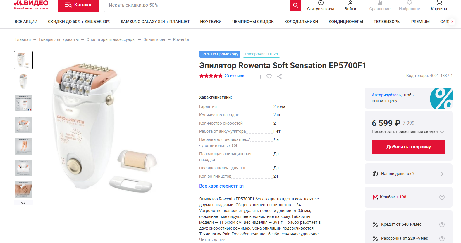 Эпилятор Rowenta EP5700F0 — 1350 ₽